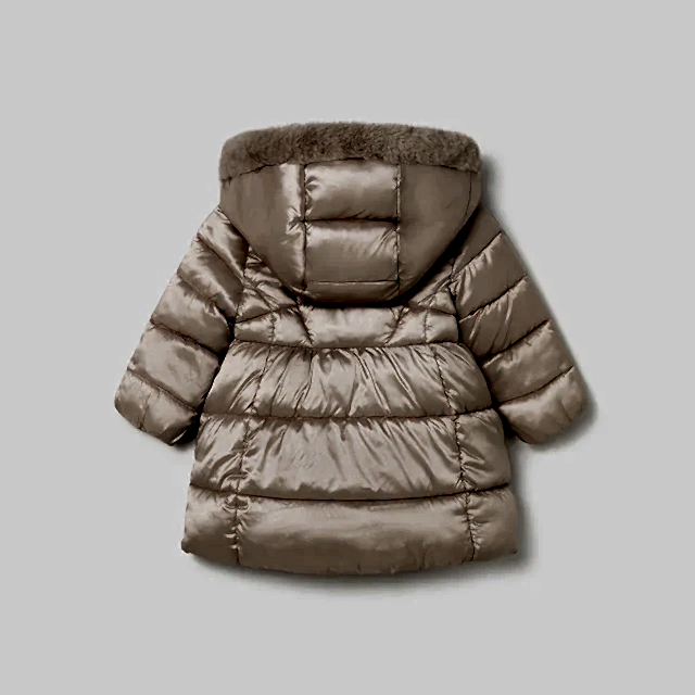 Kapüşonlu ve uzun kesimiyle minik prensesleri kışın soğuk havalardan koruyan, şık ve konforlu mont.