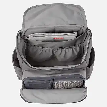 Fermuarlı gözde bir izole edilmiş termoslu çanta, bir de file çanta bulunur. Biberon, akıtmaz bardak veya atıştırmalık yiyecekler için mükemmel bir bölmeye sahip olan çantayı, bebeğinizin ilk zamanlarından sonraki aylara kadar tüm süreçlerinde yanınızda rahatlıkla taşıyabilirsiniz. İzole edilmiş çantaya normal boyutlu iki biberon rahatlıkla sığar. Kıyafet ve atıştırmalık yiyecekler için çok amaçlı fermuarlı file gözmesi mevcuttur.