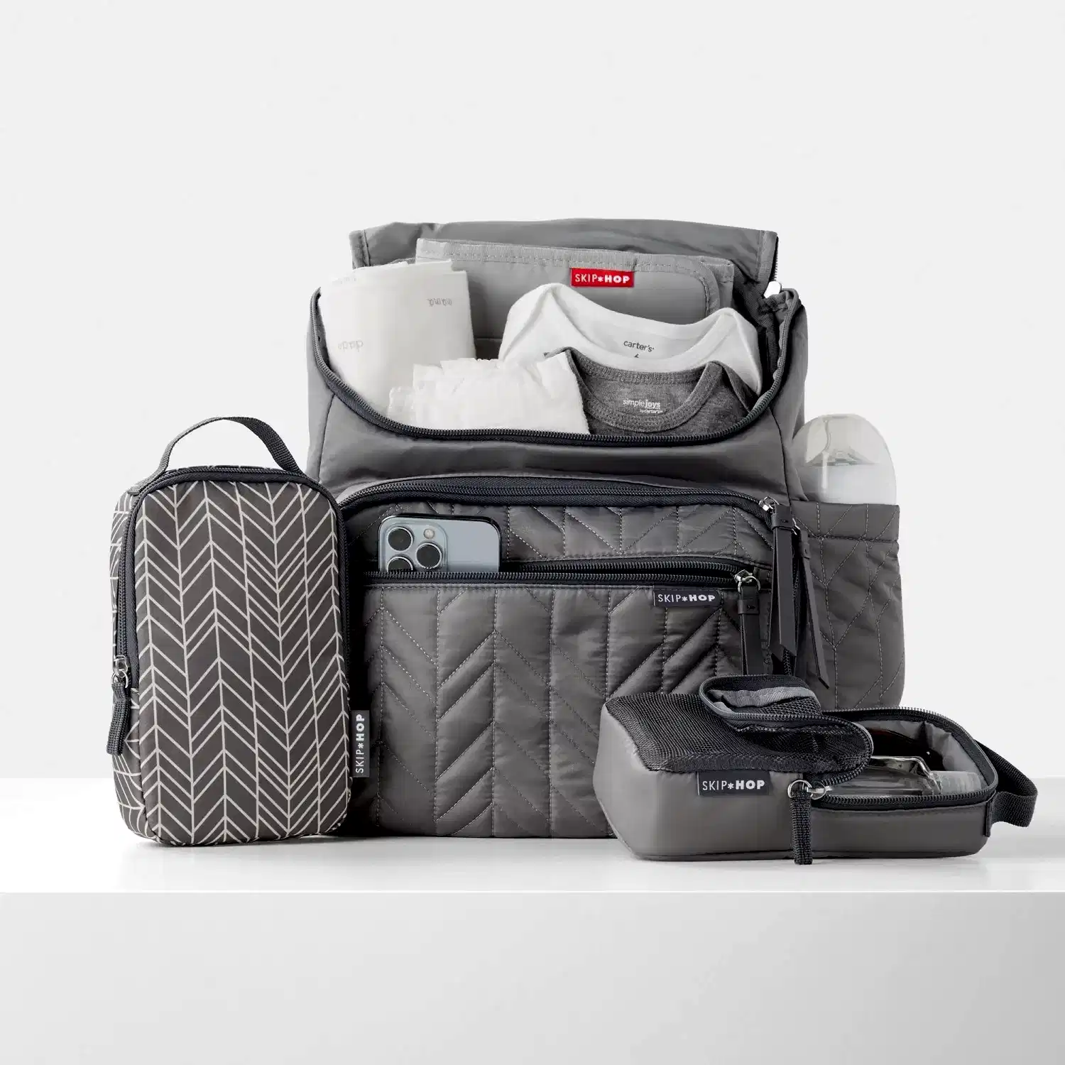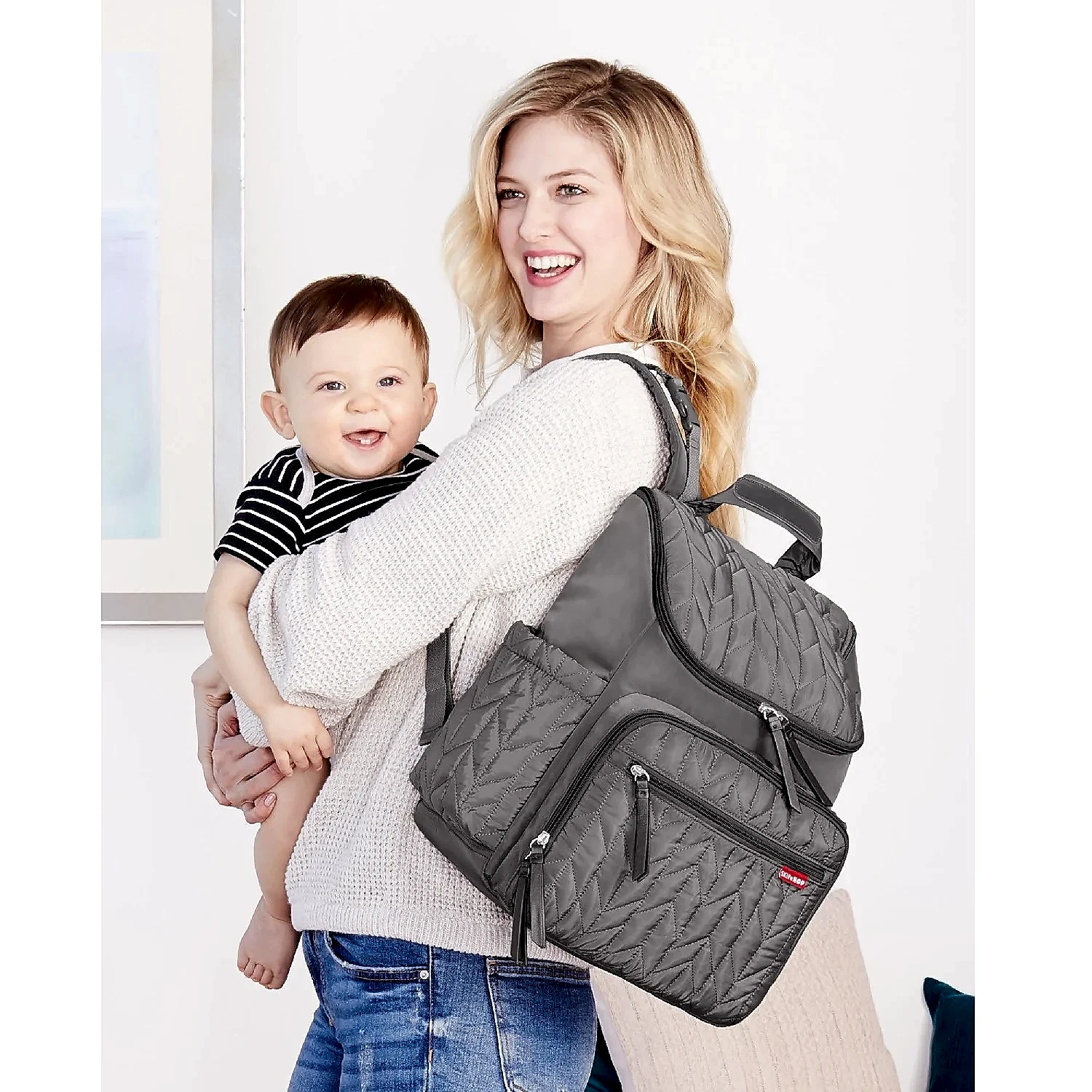 Ebeveynler için ebeveynler tarafından tasarlanan Skip Hop bebek bakım çantaları, çok sayıda bölme ve eşya gözü ile biberon, bez, mama, oyuncak ve yedek kıyafetlerin yanı sıra laptop, cep telefonu, anahtar gibi kişisel eşyalarınızı da rahatlıkla taşımanızı sağlar.